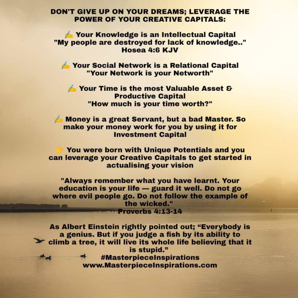 DON’T GIVE UP ON YOUR DREAMS; LEVERAGE THE POWER OF YOUR CREATIVE CAPITALS: