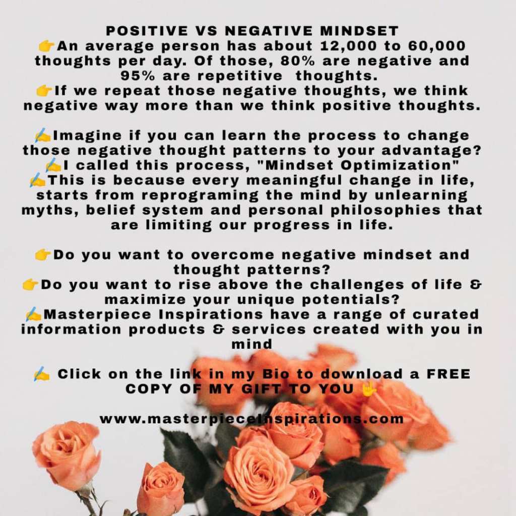 ✍️ Imagine if you can learn the process to change those negative thought patterns to your advantage?✍️ I called this process, “Mindset Optimization”