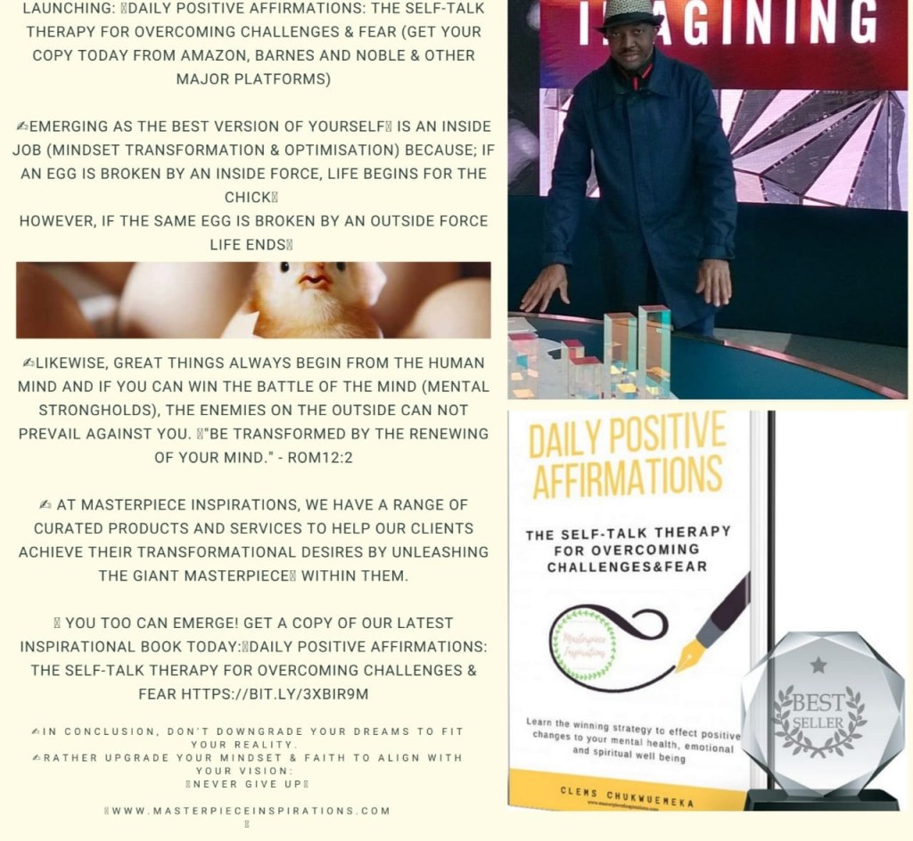 ✍️Get a copy of our latest Inspirational Book TODAY🎤👉Daily Positive Affirmations: The Self-Talk Therapy For Overcoming Challenges & Fear https://bit.ly/3xBiR9m