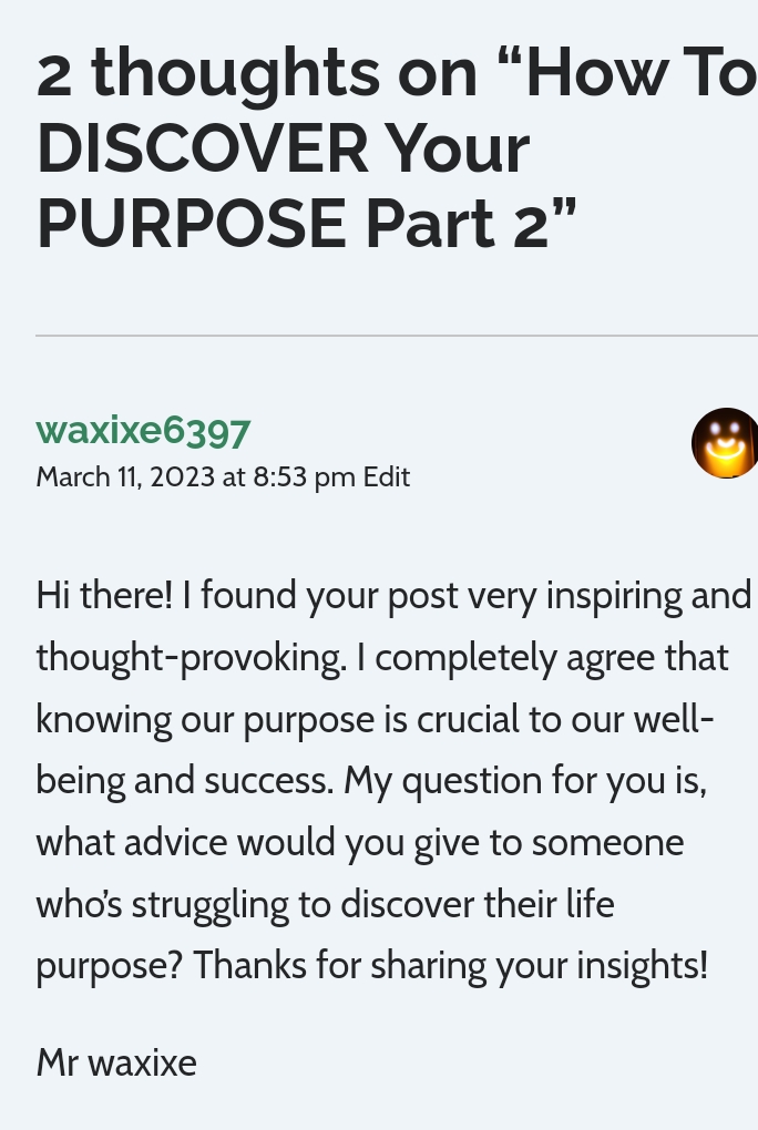 Following my very popular series on the topic “How To DISCOVER Your PURPOSE” https://masterpieceinspirations.com/2023/03/11/how-to-discover-your-purpose-part-2/; I have received interesting comments and as result of this I have created the Part 3 of this popular series to answer some questions and provide more valuable information.