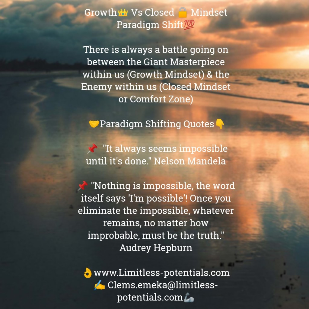 ✍️Furthermore, the enemy within is due to limiting beliefs, negative mindset, false paradigms, imposter syndrome, and negative self-image that are shaped by environmental conditioning. and other negative factors.